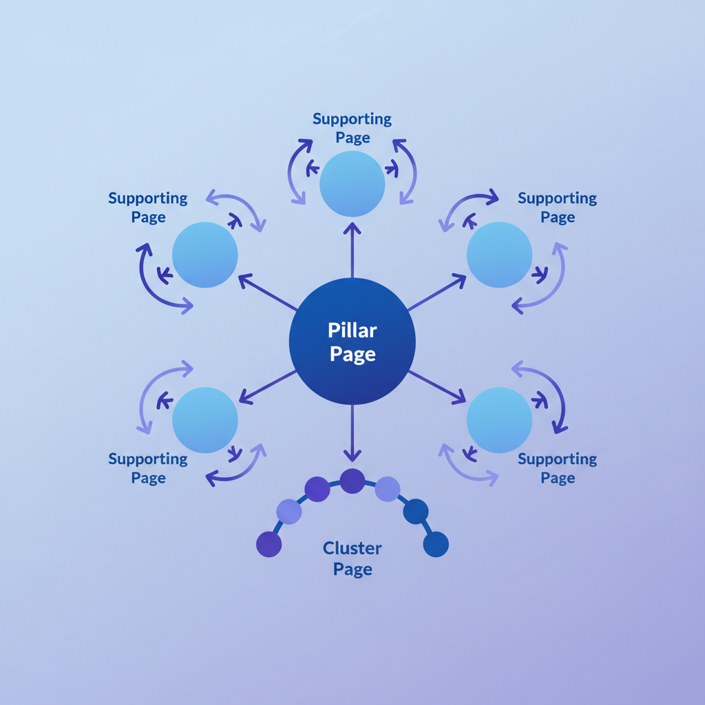 De meest effectieve interne linking strategie is de pillar-cluster structuur. Dit werkt als volgt:
